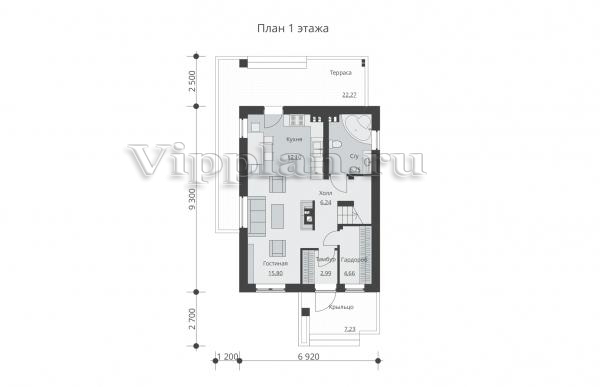 | Размеры дома: | 9.3м×6.92м |